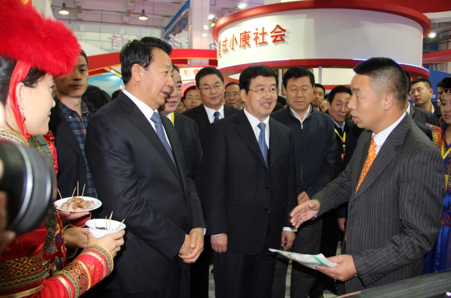 博覽會開幕式于20131011日上午9點舉行,自治區(qū)農(nóng)牧業(yè)廳郭健廳長主持,國家部委領(lǐng)導(dǎo)、自治區(qū)領(lǐng)導(dǎo)、有關(guān)協(xié)會領(lǐng)導(dǎo)、各省市區(qū)代表團(tuán)團(tuán)長、自治區(qū)有關(guān)部門及各盟市的主要領(lǐng)導(dǎo)和參展企業(yè)代表參加開幕式。開幕儀式前,各位領(lǐng)導(dǎo)一行參觀了位于內(nèi)蒙古國際會展中心一樓的展覽館,展廳主要展示各盟市企業(yè)基本情況及企業(yè)的各類產(chǎn)品。隨后,各位領(lǐng)導(dǎo)及企業(yè)代表在三樓主會場參加開幕儀式。開幕儀式由郭健廳長主持,自治區(qū)人民政府副主席王玉明和國家農(nóng)業(yè)部副部長于康正先后做了開幕式致辭。王主席指出我區(qū)發(fā)展綠色農(nóng)畜產(chǎn)品生產(chǎn)加工輸出基地具有得天獨厚的優(yōu)勢條件,我區(qū)發(fā)展農(nóng)牧業(yè)產(chǎn)業(yè)勢頭良好,并提出對各參會企業(yè)的希望。于部長在致辭中對本屆博覽會的召開表示了熱烈祝賀,內(nèi)蒙古是全國發(fā)展農(nóng)畜產(chǎn)品生產(chǎn)加工輸出基地的重要省區(qū),對保障國家農(nóng)業(yè)發(fā)展有舉足輕重的作用。