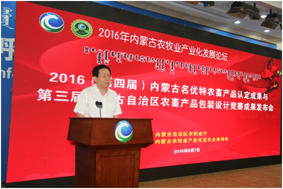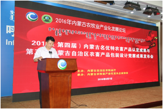 8月7日上午,第四屆內(nèi)蒙古“名優(yōu)特”農(nóng)畜產(chǎn)品認(rèn)定及第三屆內(nèi)蒙古自治區(qū)包裝設(shè)計(jì)競(jìng)賽成果發(fā)布會(huì)及內(nèi)蒙古農(nóng)牧業(yè)產(chǎn)業(yè)化論壇在內(nèi)蒙古國(guó)際會(huì)展中心盛大開(kāi)幕。內(nèi)蒙古自治區(qū)農(nóng)牧業(yè)廳廳長(zhǎng)郭健、副廳長(zhǎng)云挨厚、產(chǎn)業(yè)化處處長(zhǎng)侯雁冰、辦公室副主任黃偉,中國(guó)農(nóng)業(yè)產(chǎn)業(yè)化龍頭企業(yè)協(xié)會(huì)綜合部副主任程篤學(xué)、內(nèi)蒙古農(nóng)牧業(yè)產(chǎn)業(yè)化龍頭企業(yè)協(xié)會(huì)會(huì)長(zhǎng)閆樹(shù)春,內(nèi)蒙古農(nóng)牧業(yè)產(chǎn)業(yè)化龍頭企業(yè)協(xié)會(huì)執(zhí)行會(huì)長(zhǎng)兼秘書(shū)長(zhǎng)林永亮,各盟市農(nóng)牧業(yè)局(產(chǎn)業(yè)化辦公室)負(fù)責(zé)人,精品館負(fù)責(zé)人,內(nèi)蒙古農(nóng)牧業(yè)產(chǎn)業(yè)化龍頭企業(yè)負(fù)責(zé)人,各參展企業(yè)負(fù)責(zé)人及包裝名優(yōu)特獲獎(jiǎng)企業(yè)負(fù)責(zé)人,協(xié)會(huì)辦事處負(fù)責(zé)人、會(huì)員單位等200余人出席會(huì)議,自治區(qū)農(nóng)牧業(yè)廳產(chǎn)業(yè)化處處長(zhǎng)侯雁冰主持會(huì)議。本次會(huì)議特別邀請(qǐng)到中國(guó)農(nóng)業(yè)科學(xué)院農(nóng)產(chǎn)品加工研究所所長(zhǎng)、黨委副書(shū)記戴小楓做主旨演講。