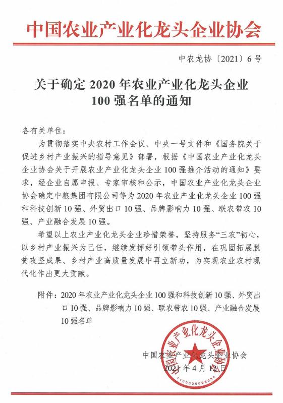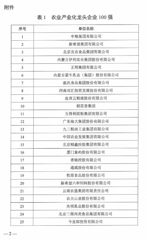 2020年農(nóng)業(yè)產(chǎn)業(yè)化龍頭企業(yè)百?gòu)?qiáng)名單發(fā)布