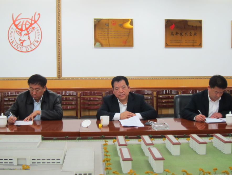 林永亮常務(wù)副會長、羊絨分會會長王風之、秘書長魯耀武在鹿王羊絨有限公司參加調(diào)研座談會