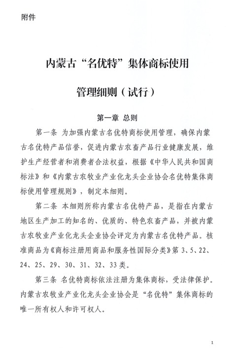關(guān)于印發(fā)《內(nèi)蒙古“名優(yōu)特”集體商標(biāo)使用管理細(xì)則(試行)的通知》