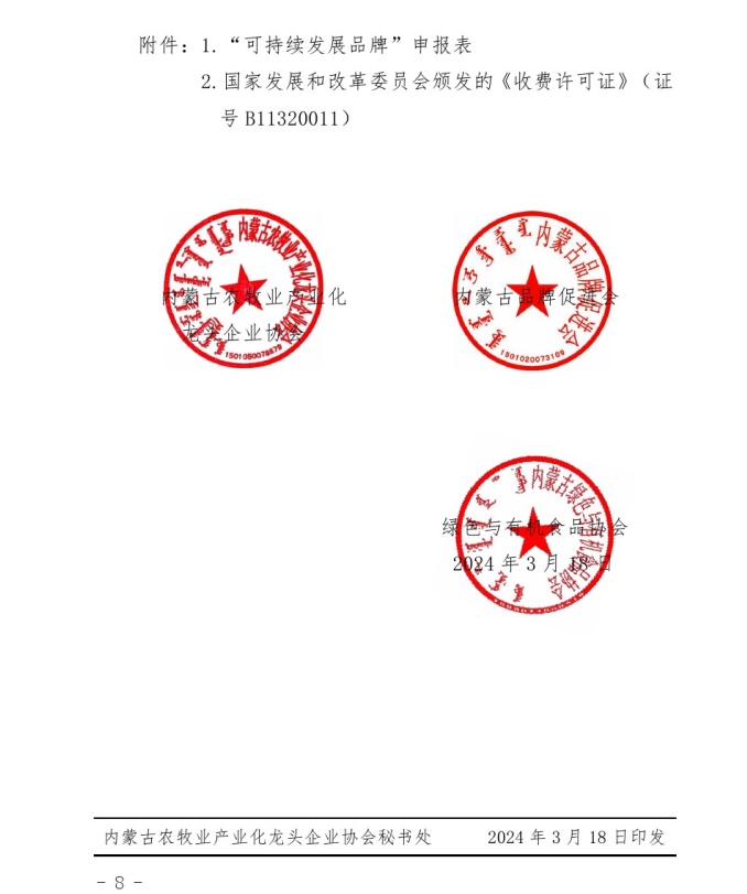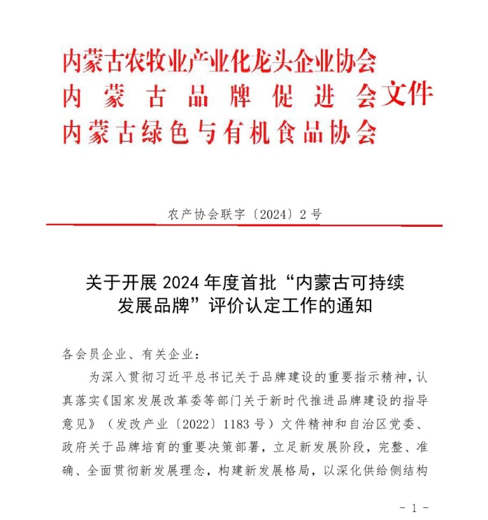 關(guān)于開展2024年度首批“內(nèi)蒙古可持續(xù) 發(fā)展品牌”評價認(rèn)定工作的通知