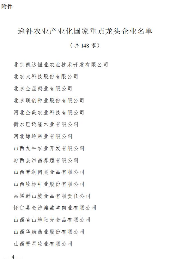 附件:新遞補的農(nóng)業(yè)產(chǎn)業(yè)化國家重點龍頭企業(yè)名單(共148 家)