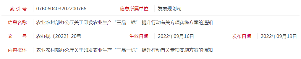 農(nóng)業(yè)農(nóng)村部辦公廳關(guān)于印發(fā)農(nóng)業(yè)生產(chǎn)“三品一標(biāo)” 提升行動有關(guān)專項(xiàng)實(shí)施方案的通