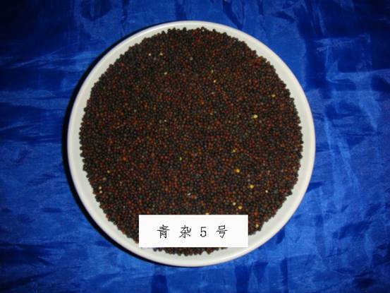 青雜5號品種為甘藍型春性質(zhì)不育三系雜交種。全生育期134天左右,與對照青雜1號相當。幼苗半直立,葉色深綠,有裂葉23對,葉緣波狀,臘粉少,無刺毛?;ò挈S色,花冠橢圓形,花瓣側疊。株高171厘米左右,分枝部位62厘米左右,勻生分枝。平均單株有效角果數(shù)221.2個,每角粒數(shù)25.7粒,千粒重3.9。