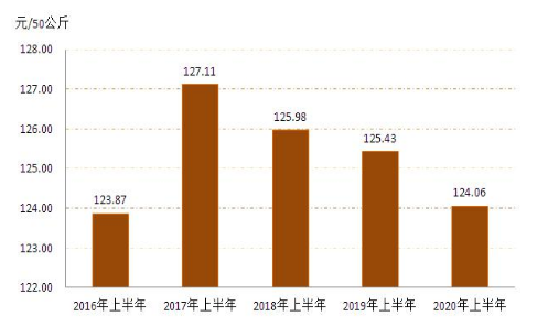 1.小麥:1、2月份春節(jié)假期疊加新冠肺炎疫情,糧企停工停產(chǎn),市場交易趨于平淡,小麥收購價格整體穩(wěn)定。3月份之后,隨著新冠肺炎疫情得到有效控制,各地復工復產(chǎn)復學的大范圍推進,截止12月份全區(qū)小麥每50公斤平均收購價格為124.06元,同比下降1.09%,詳見圖3。(來源:內(nèi)蒙古自治區(qū)發(fā)展和改革委員會)