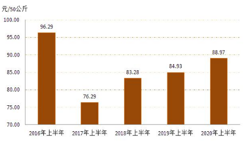 4   20162020年上半年全區(qū)玉米收購價格對比圖