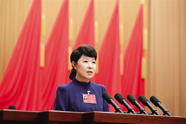 自治區(qū)人民政府主席王莉霞作政府工作報(bào)告。 本報(bào)記者 韓卿立 攝